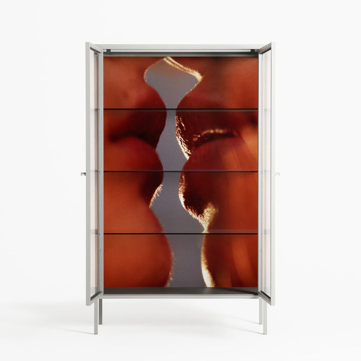 Vitrine pairs artworks by artists, designers, and creatives from around the world with a frame that elevates and displays them in everyday space. The cabinet is built from precision-cut metal with a powder-coated finish — resistant to wear and crafted for stability — making it ideal for both office and home spaces.