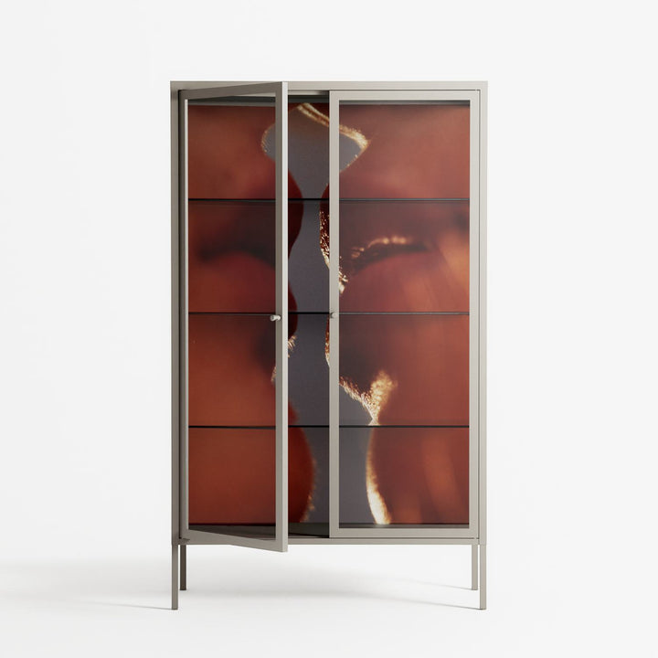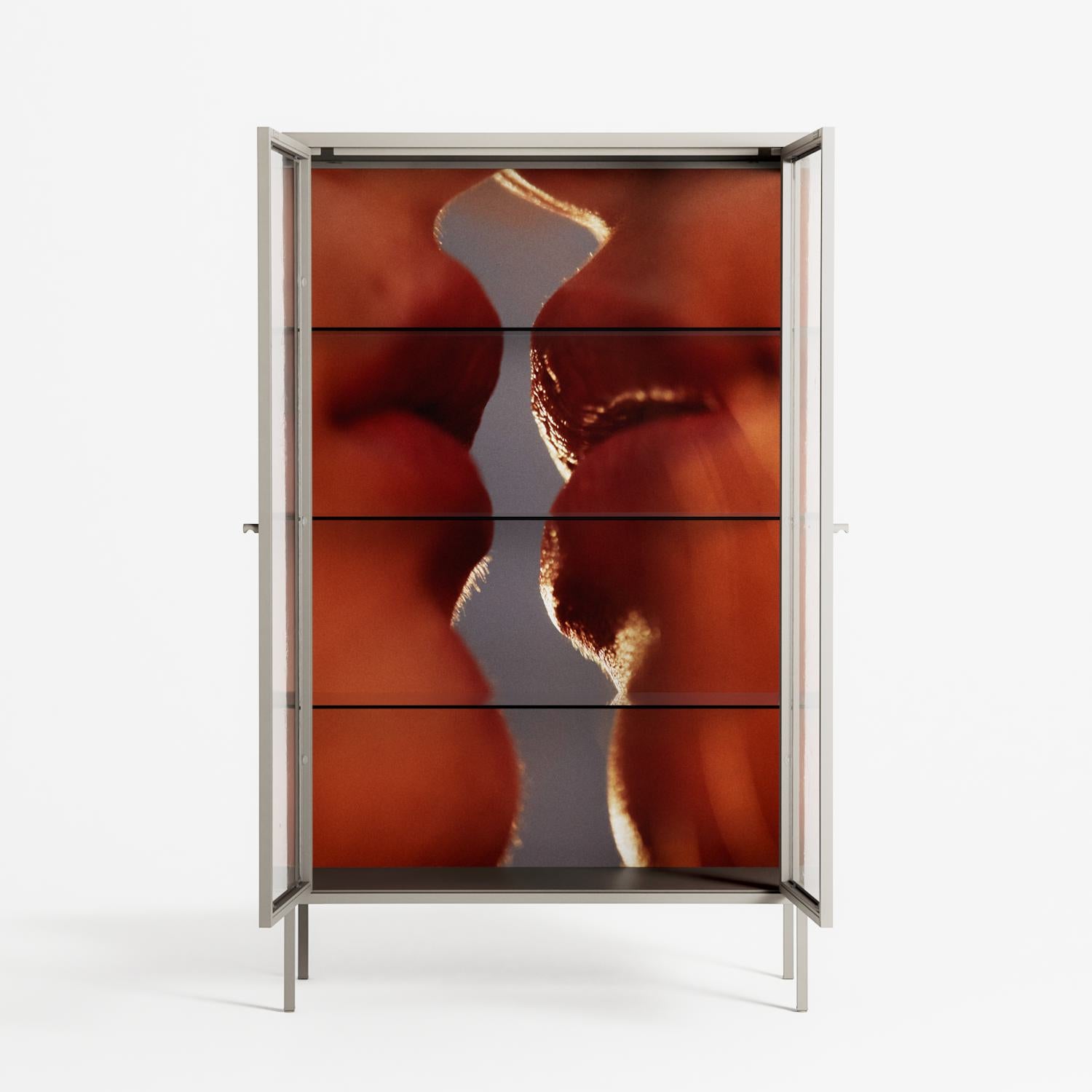 Vitrine pairs artworks by artists, designers, and creatives from around the world with a frame that elevates and displays them in everyday space. The cabinet is built from precision-cut metal with a powder-coated finish — resistant to wear and crafted for stability — making it ideal for both office and home spaces.