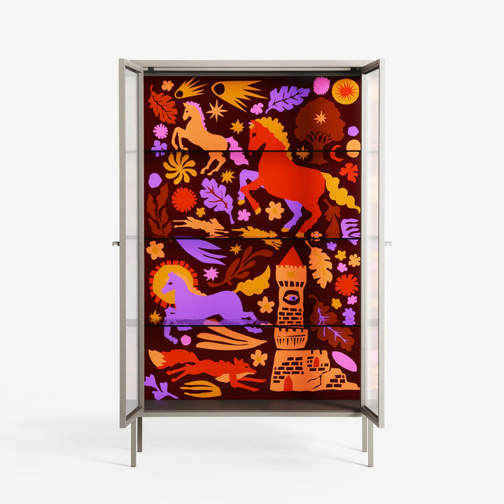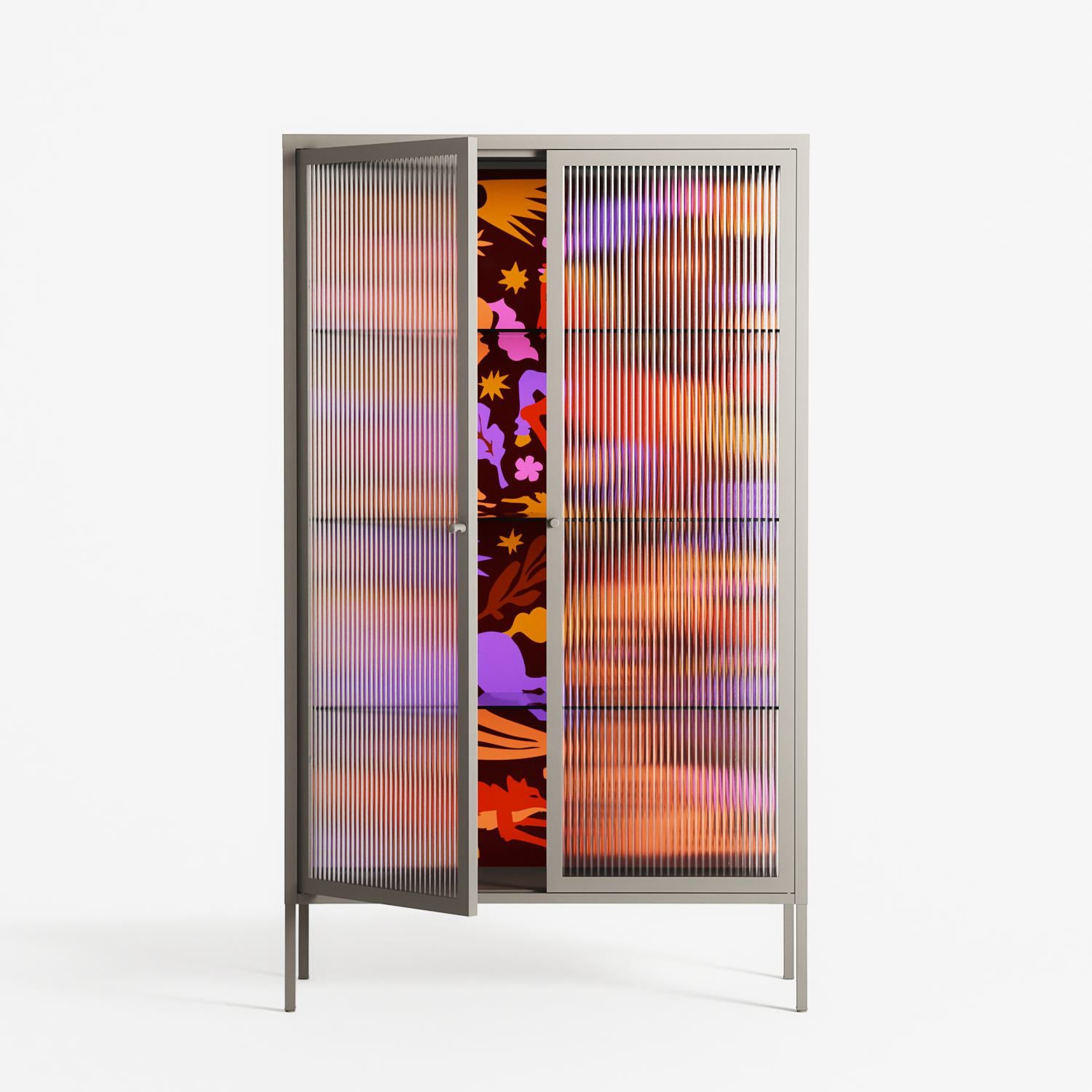 Vitrine pairs artworks by artists, designers, and creatives from around the world with a frame that elevates and displays them in everyday space. The cabinet is built from precision-cut metal with a powder-coated finish — resistant to wear and crafted for stability — making it ideal for both office and home spaces.