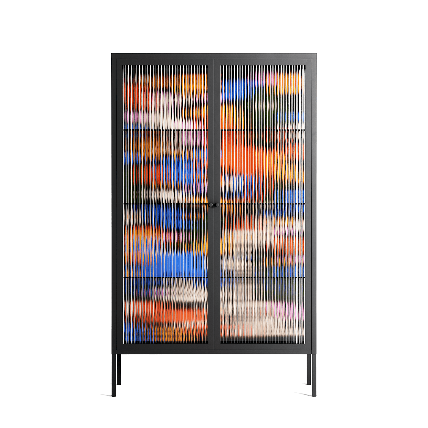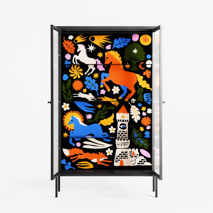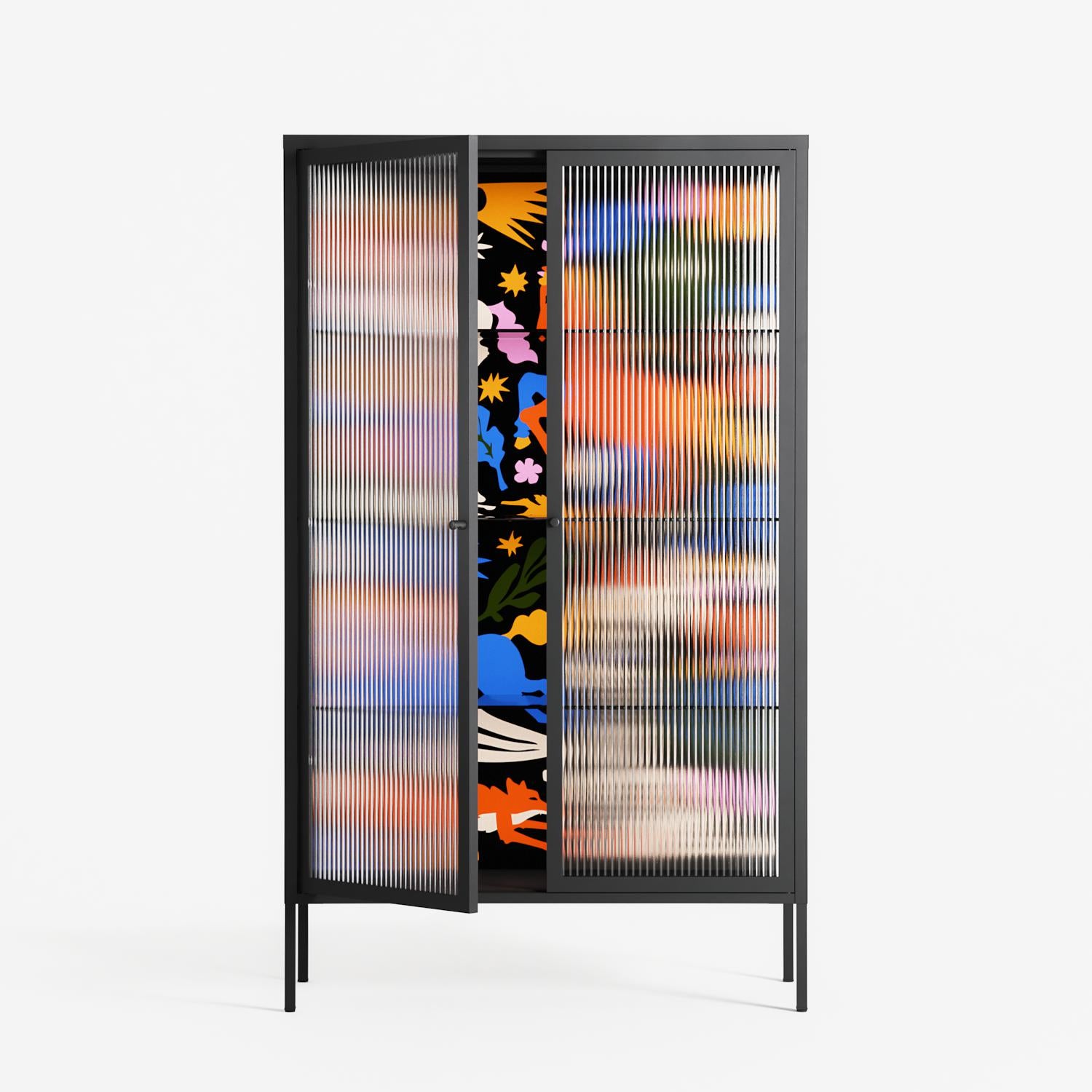 Vitrine pairs artworks by artists, designers, and creatives from around the world with a frame that elevates and displays them in everyday space. The cabinet is built from precision-cut metal with a powder-coated finish — resistant to wear and crafted for stability — making it ideal for both office and home spaces.