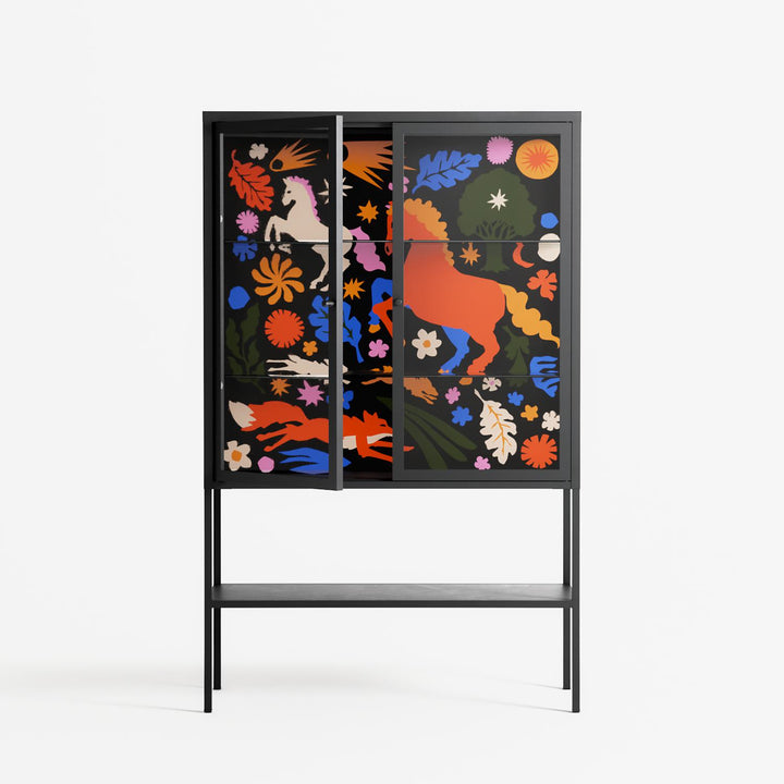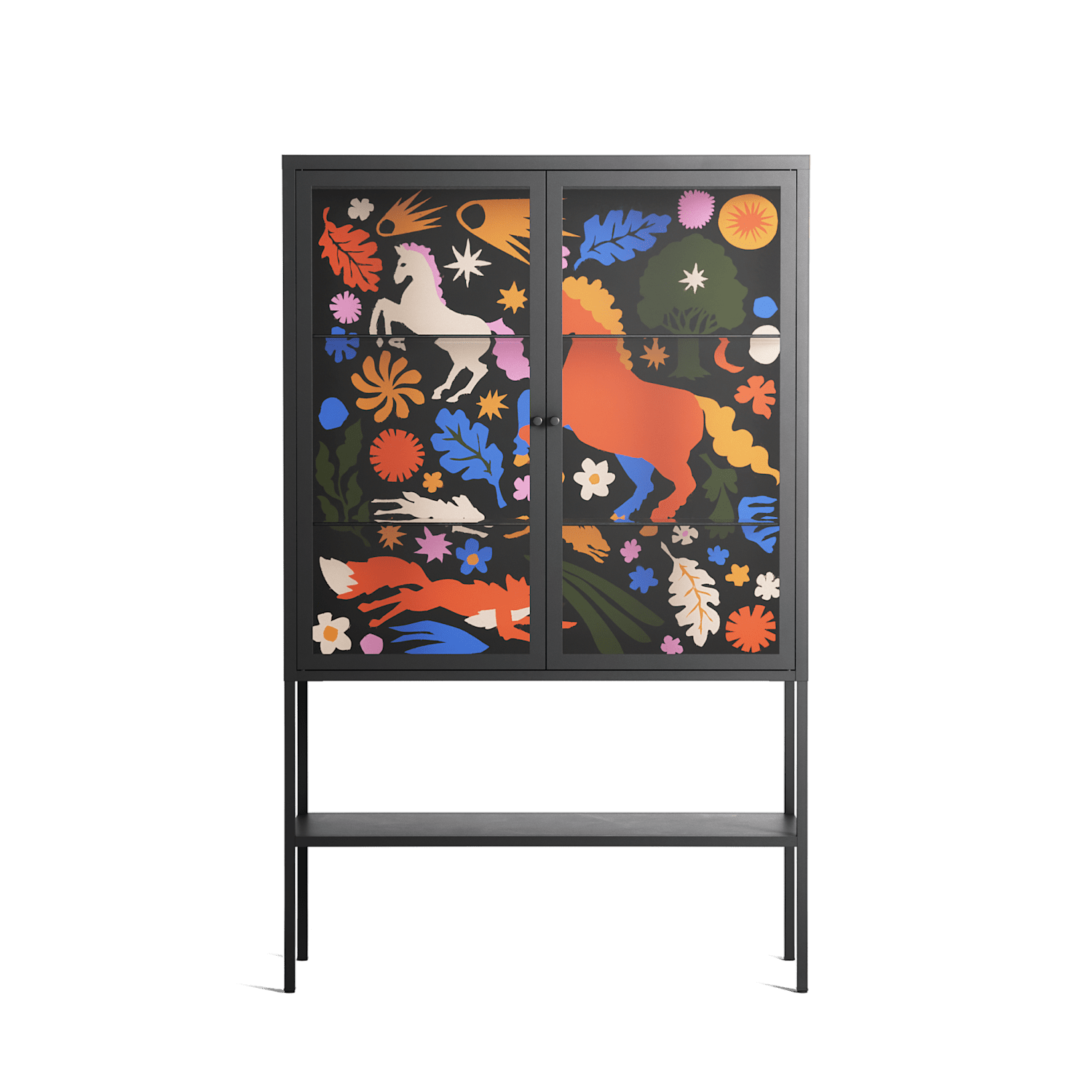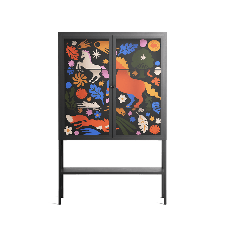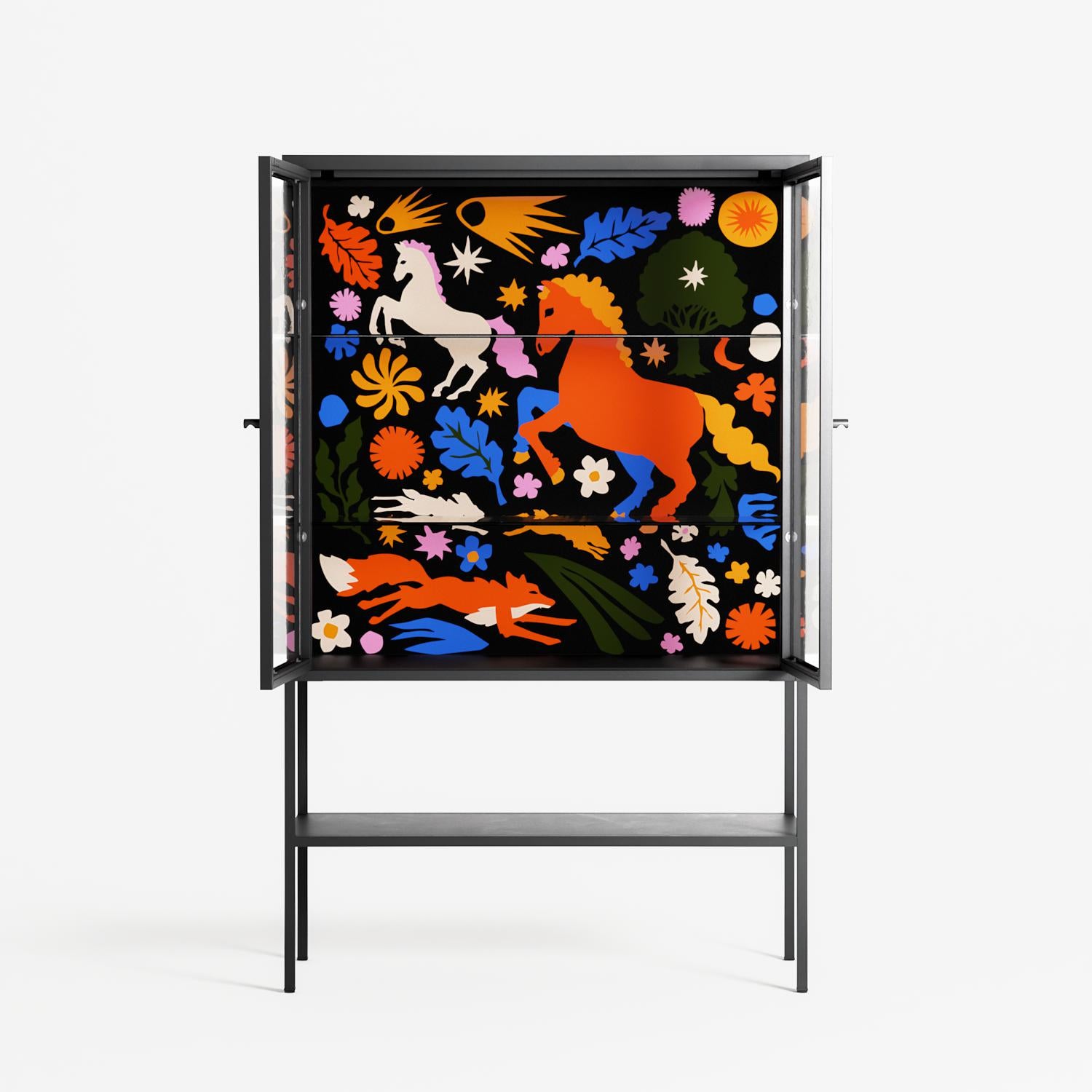 Vitrine pairs artworks by artists, designers, and creatives from around the world with a frame that elevates and displays them in everyday space. The cabinet is built from precision-cut metal with a powder-coated finish — resistant to wear and crafted for stability — making it ideal for both office and home spaces.
