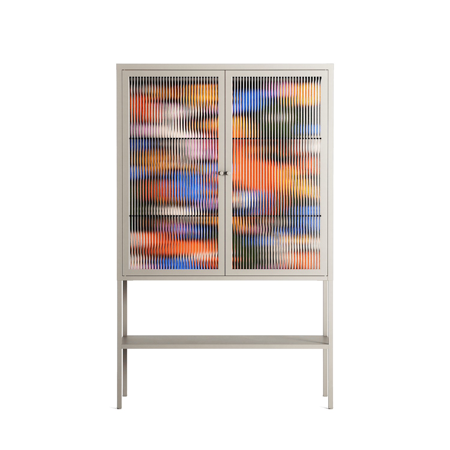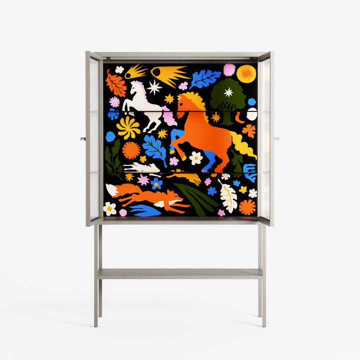 Vitrine pairs artworks by artists, designers, and creatives from around the world with a frame that elevates and displays them in everyday space. The cabinet is built from precision-cut metal with a powder-coated finish — resistant to wear and crafted for stability — making it ideal for both office and home spaces.