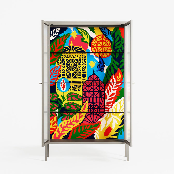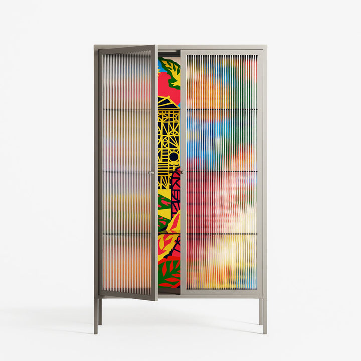 Vitrine pairs artworks by artists, designers, and creatives from around the world with a frame that elevates and displays them in everyday space. The cabinet is built from precision-cut metal with a powder-coated finish — resistant to wear and crafted for stability — making it ideal for both office and home spaces.