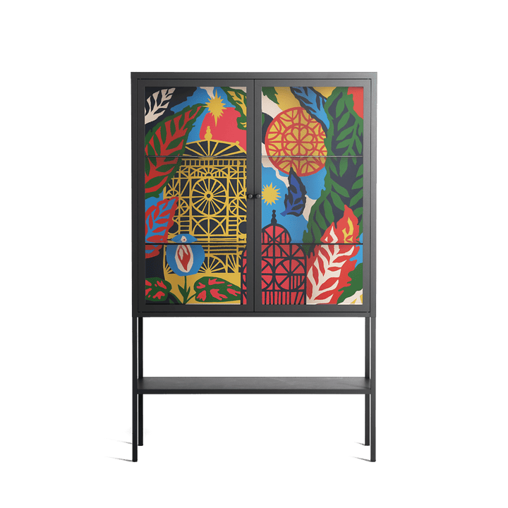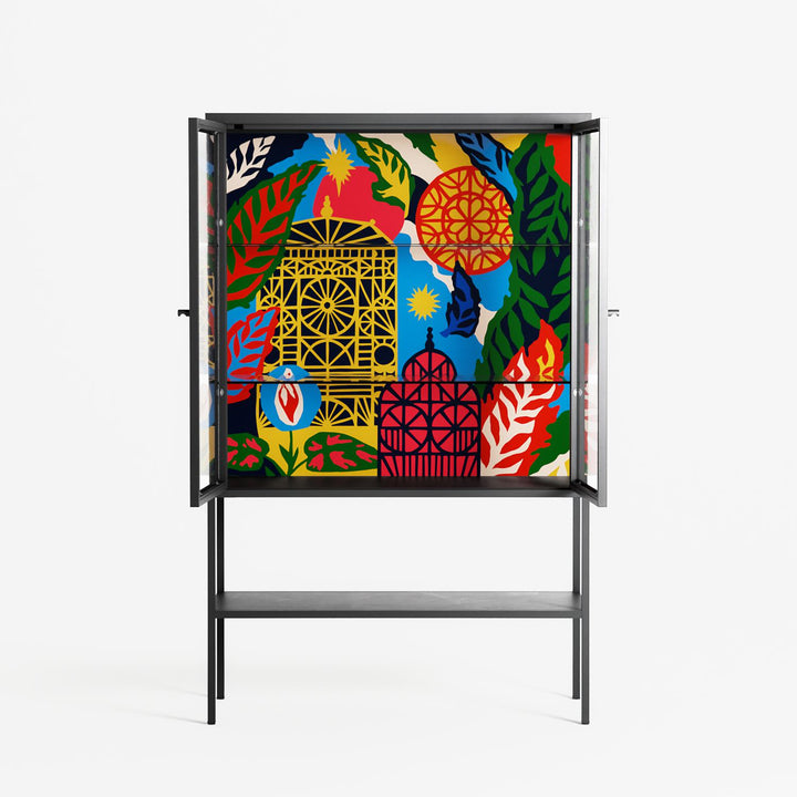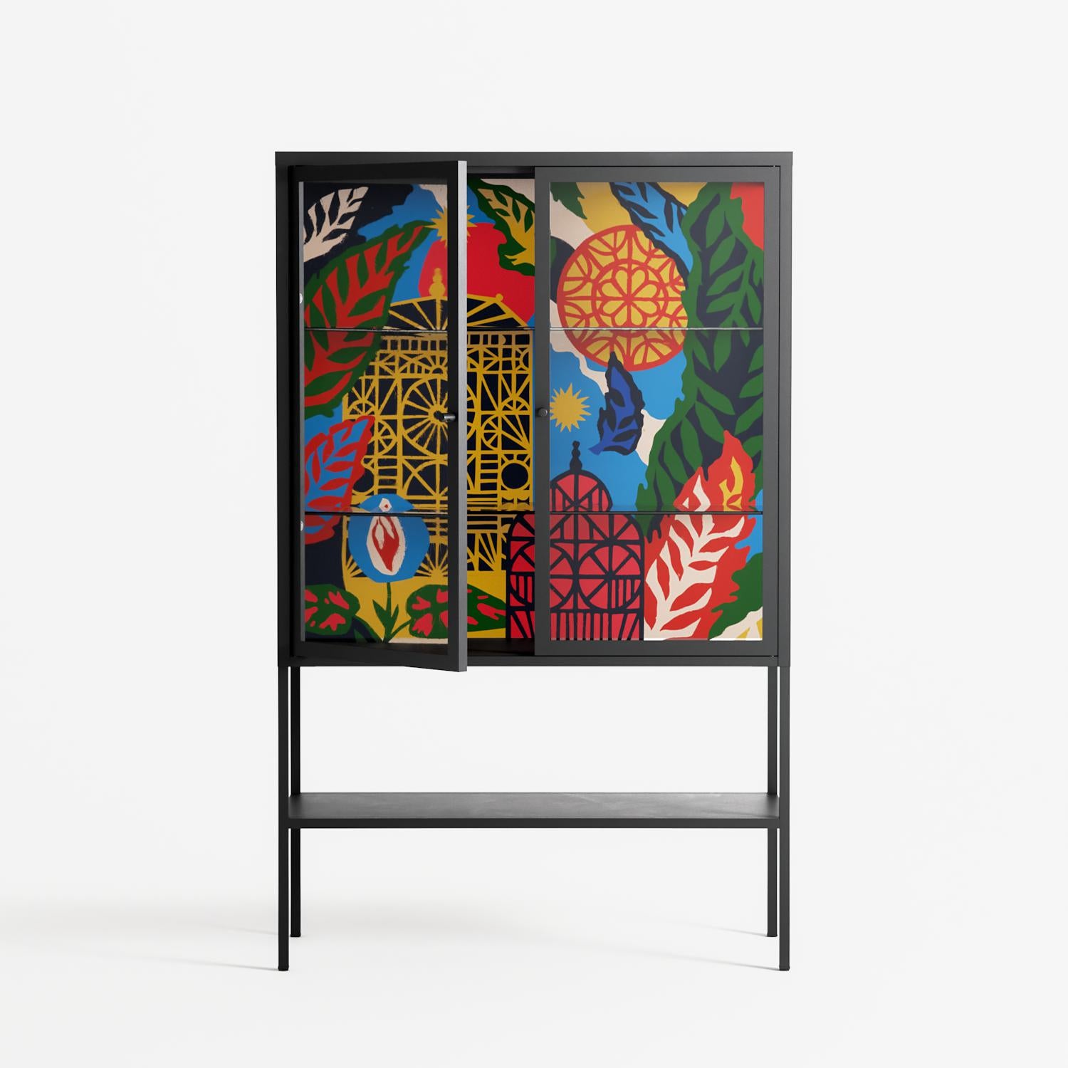 Vitrine pairs artworks by artists, designers, and creatives from around the world with a frame that elevates and displays them in everyday space. The cabinet is built from precision-cut metal with a powder-coated finish — resistant to wear and crafted for stability — making it ideal for both office and home spaces.