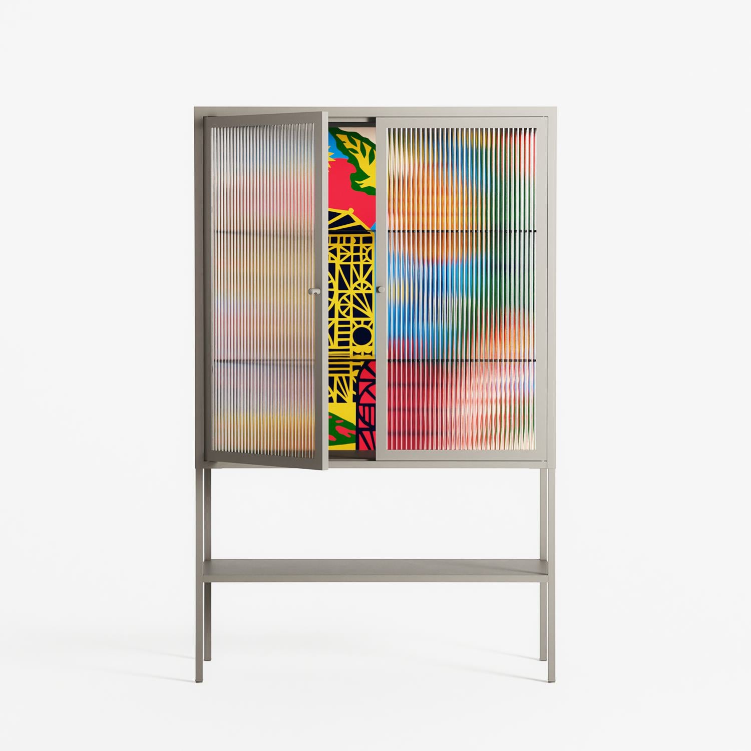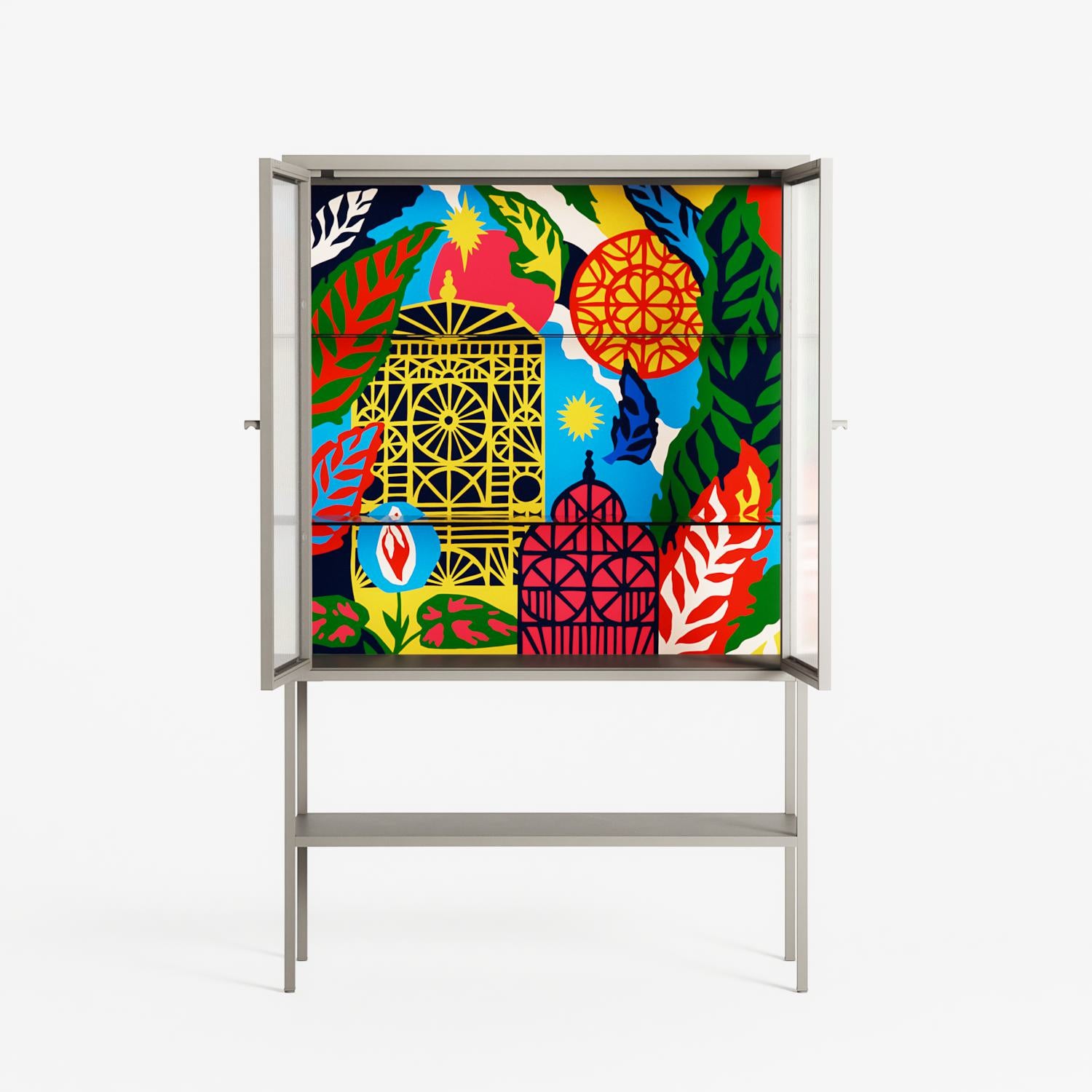 Vitrine pairs artworks by artists, designers, and creatives from around the world with a frame that elevates and displays them in everyday space. The cabinet is built from precision-cut metal with a powder-coated finish — resistant to wear and crafted for stability — making it ideal for both office and home spaces.