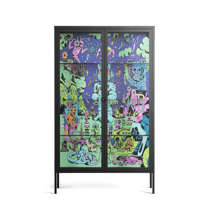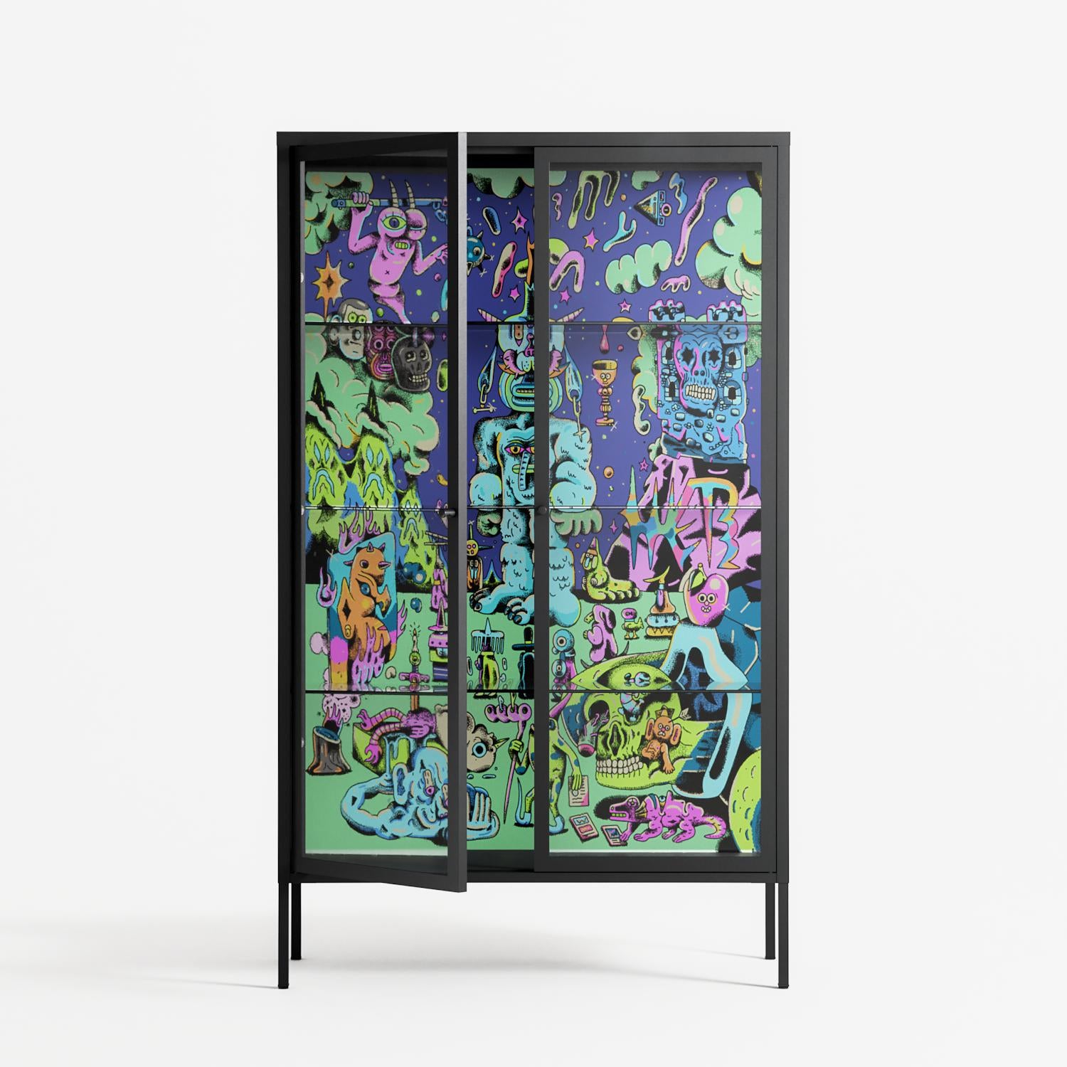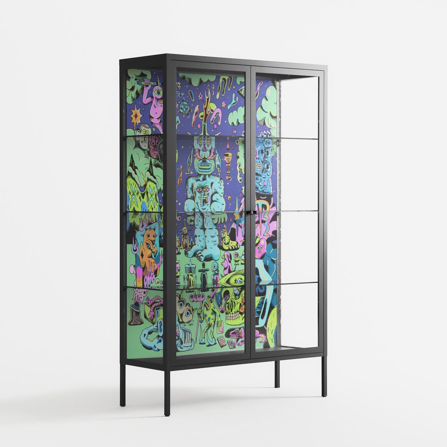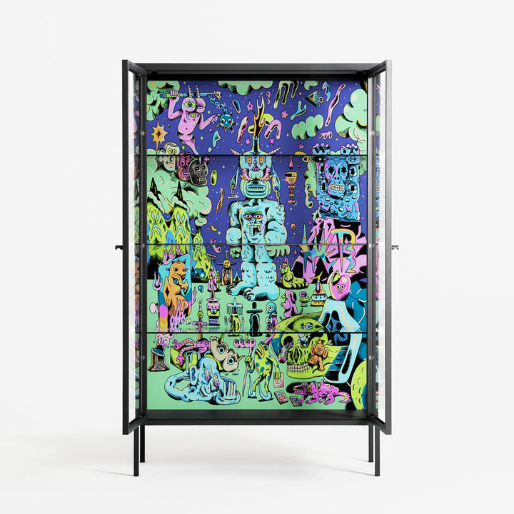 Vitrine pairs artworks by artists, designers, and creatives from around the world with a frame that elevates and displays them in everyday space. The cabinet is built from precision-cut metal with a powder-coated finish — resistant to wear and crafted for stability — making it ideal for both office and home spaces.