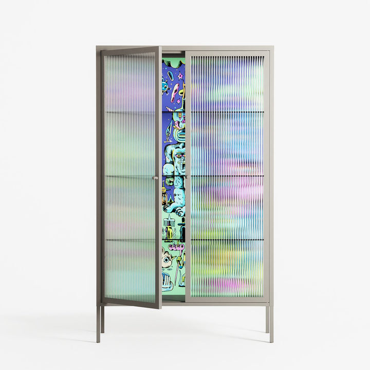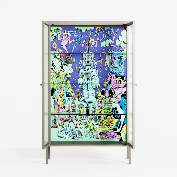 Vitrine pairs artworks by artists, designers, and creatives from around the world with a frame that elevates and displays them in everyday space. The cabinet is built from precision-cut metal with a powder-coated finish — resistant to wear and crafted for stability — making it ideal for both office and home spaces.