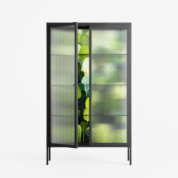 Designed to arrive flat-packed, Vitrine makes assembly straightforward and stress-free. Each component is engineered for a precise fit, allowing you to set it up quickly and easily. Adjustable glass shelves offer complete flexibility, giving you the freedom to compose and recompose your display at will.