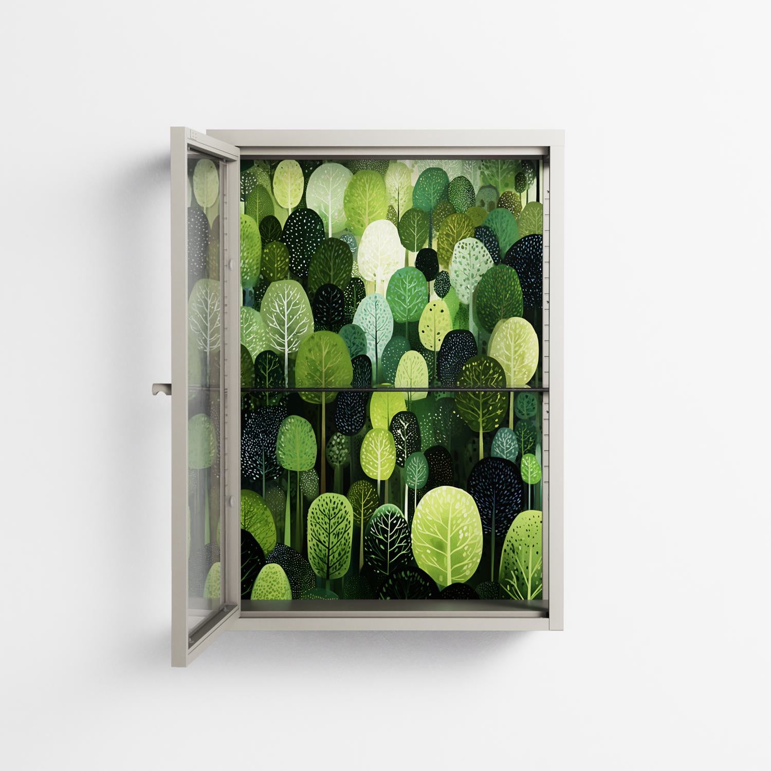 Vitrine pairs artworks by artists, designers, and creatives from around the world with a frame that elevates and displays them in everyday space. The cabinet is built from precision-cut metal with a powder-coated finish — resistant to wear and crafted for stability — making it ideal for both office and home spaces.