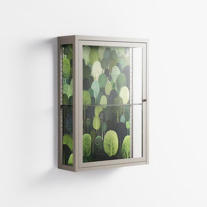 Tummetott by Nur Rydberg, displayed within the Vitrine Wall Cabinet behind Clear glass. Finished in the colour Pebble, the cabinet becomes a frame for the artwork and the objects within.