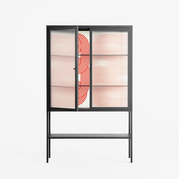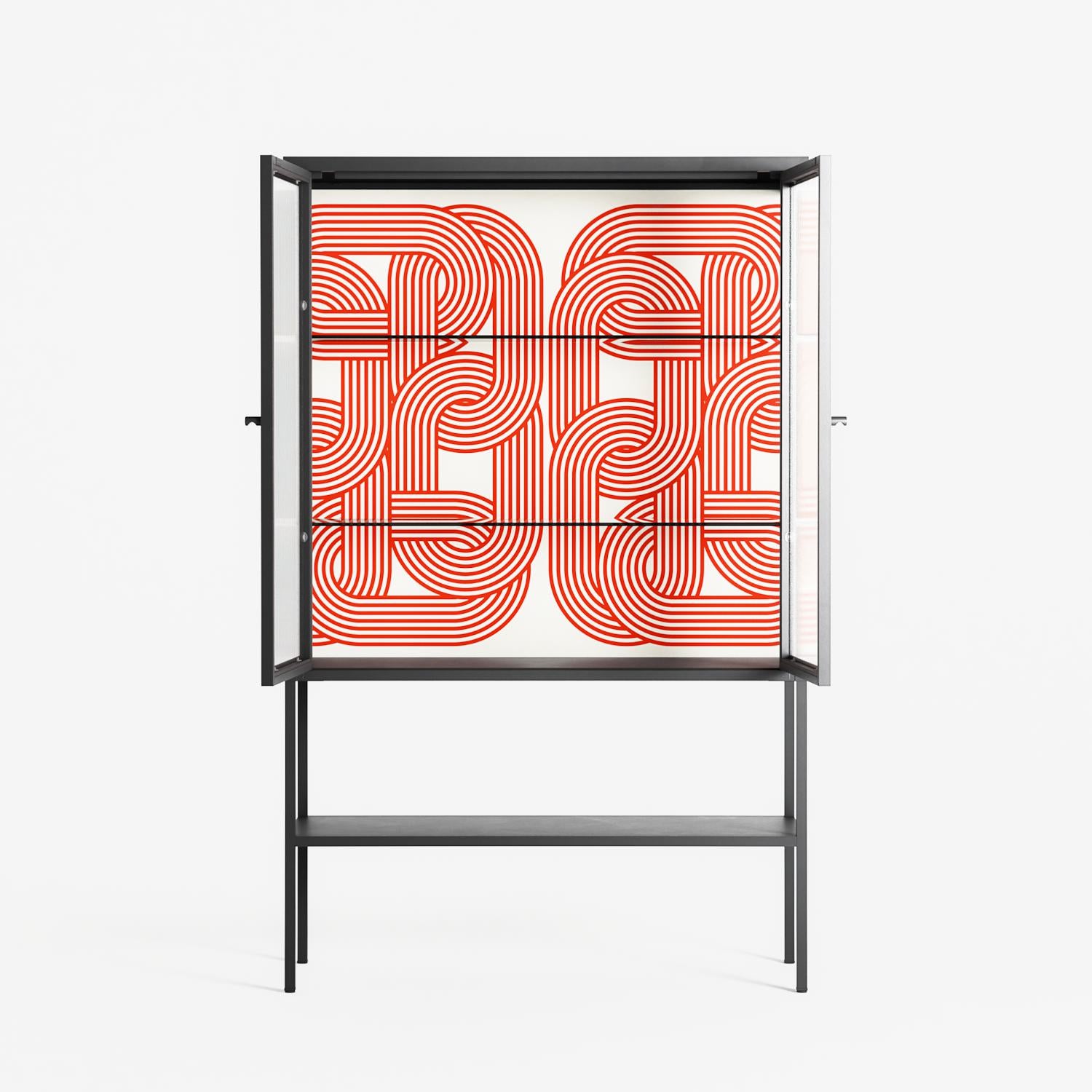 Vitrine pairs artworks by artists, designers, and creatives from around the world with a frame that elevates and displays them in everyday space. The cabinet is built from precision-cut metal with a powder-coated finish — resistant to wear and crafted for stability — making it ideal for both office and home spaces.