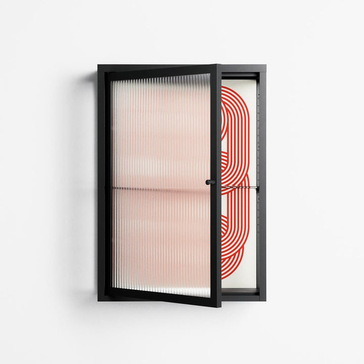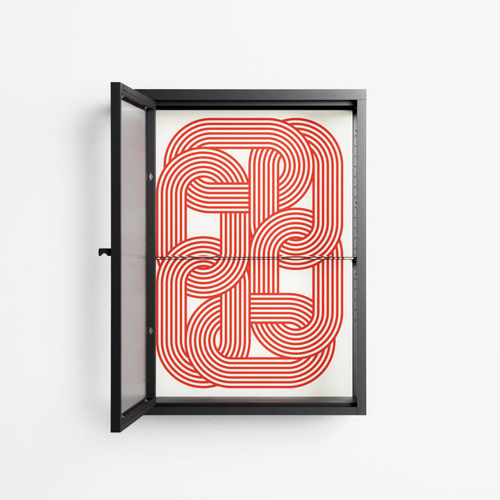 Vitrine pairs artworks by artists, designers, and creatives from around the world with a frame that elevates and displays them in everyday space. The cabinet is built from precision-cut metal with a powder-coated finish — resistant to wear and crafted for stability — making it ideal for both office and home spaces.