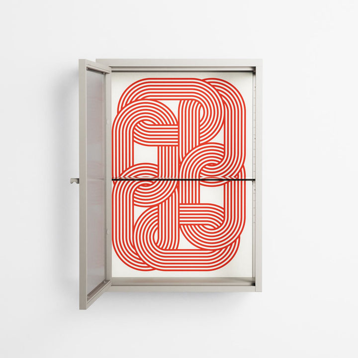 Vitrine pairs artworks by artists, designers, and creatives from around the world with a frame that elevates and displays them in everyday space. The cabinet is built from precision-cut metal with a powder-coated finish — resistant to wear and crafted for stability — making it ideal for both office and home spaces.
