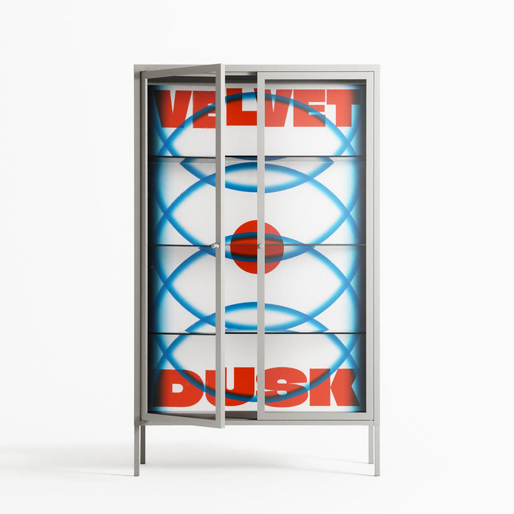 Vitrine pairs artworks by artists, designers, and creatives from around the world with a frame that elevates and displays them in everyday space. The cabinet is built from precision-cut metal with a powder-coated finish — resistant to wear and crafted for stability — making it ideal for both office and home spaces.