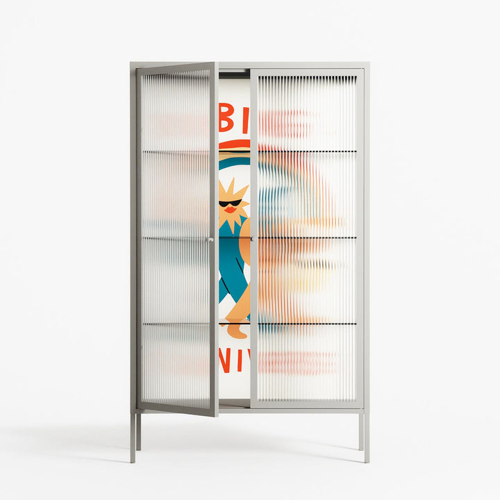 Vitrine pairs artworks by artists, designers, and creatives from around the world with a frame that elevates and displays them in everyday space. The cabinet is built from precision-cut metal with a powder-coated finish — resistant to wear and crafted for stability — making it ideal for both office and home spaces.