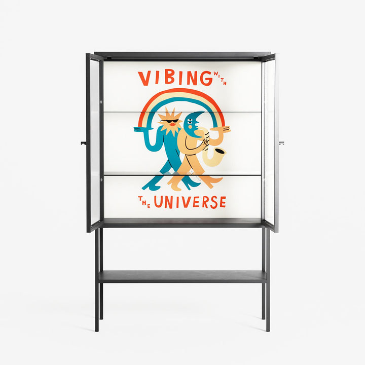 Vitrine pairs artworks by artists, designers, and creatives from around the world with a frame that elevates and displays them in everyday space. The cabinet is built from precision-cut metal with a powder-coated finish — resistant to wear and crafted for stability — making it ideal for both office and home spaces.
