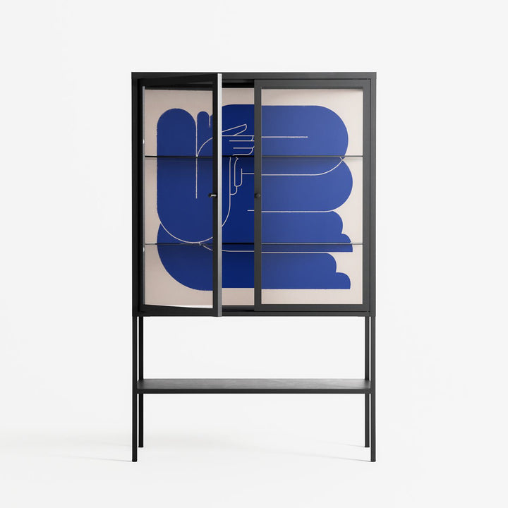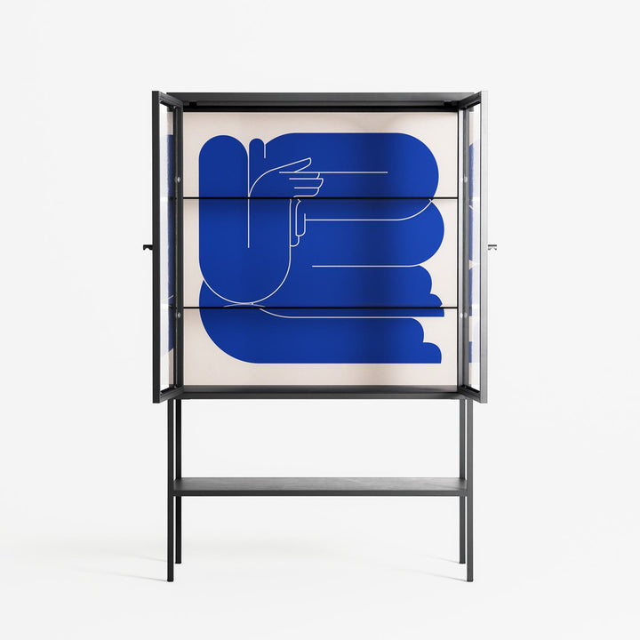 Vitrine pairs artworks by artists, designers, and creatives from around the world with a frame that elevates and displays them in everyday space. The cabinet is built from precision-cut metal with a powder-coated finish — resistant to wear and crafted for stability — making it ideal for both office and home spaces.