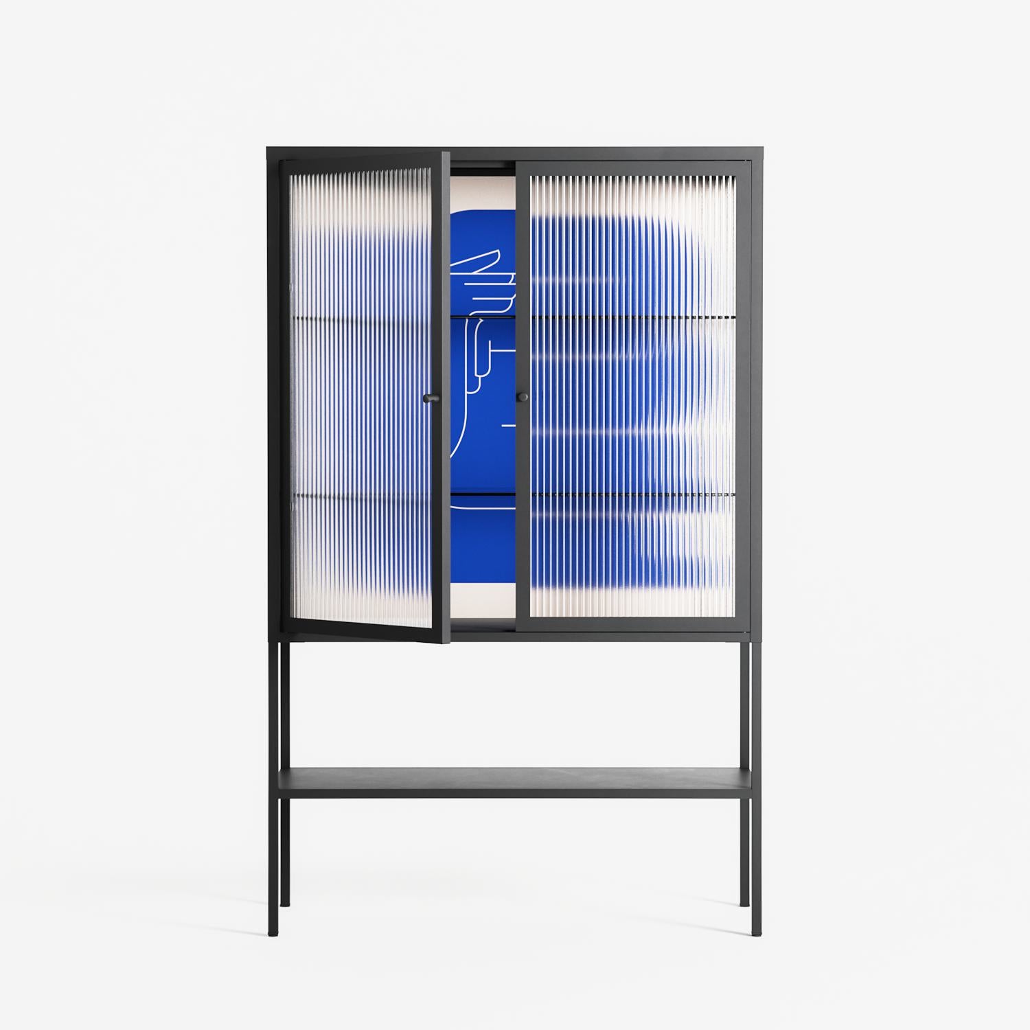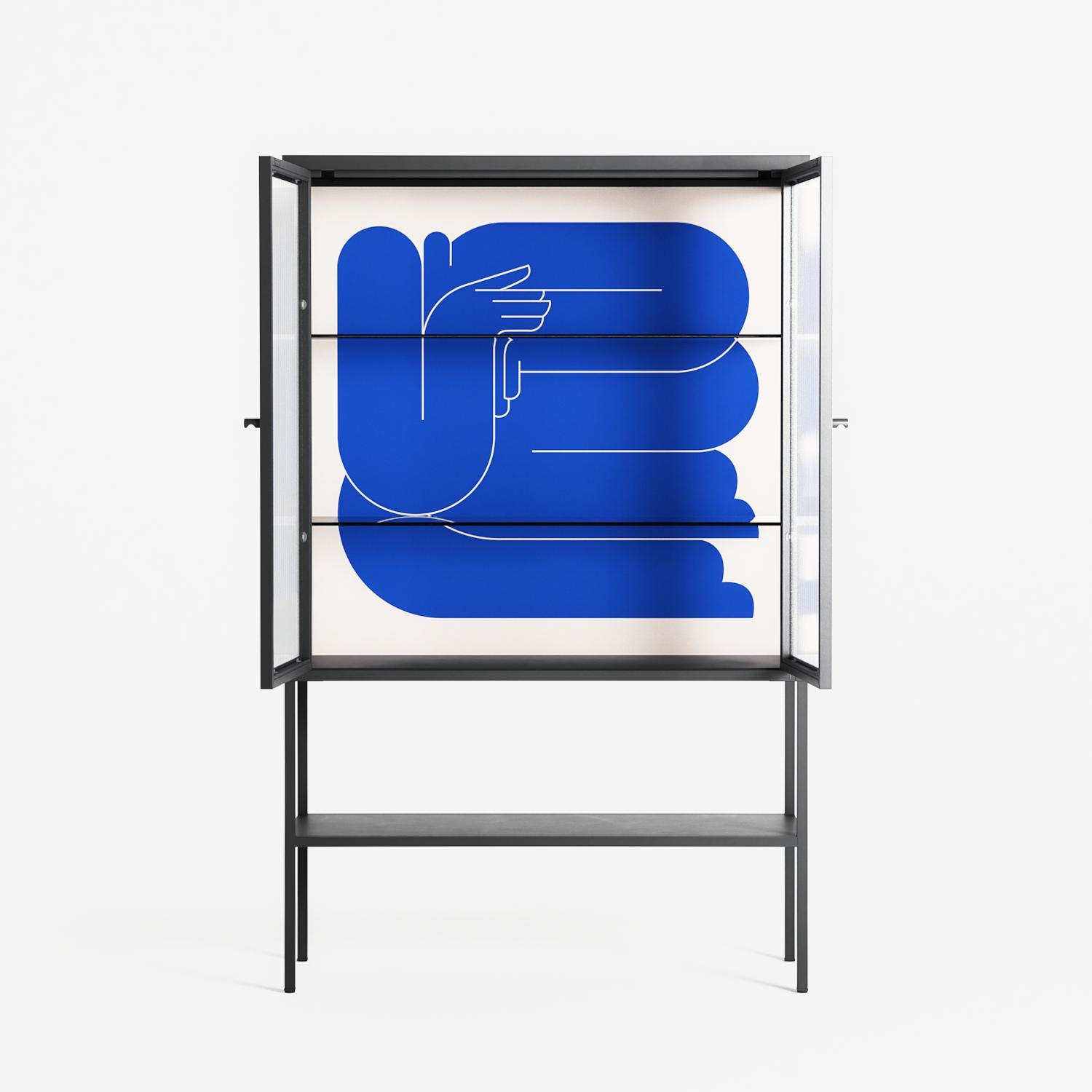 Vitrine pairs artworks by artists, designers, and creatives from around the world with a frame that elevates and displays them in everyday space. The cabinet is built from precision-cut metal with a powder-coated finish — resistant to wear and crafted for stability — making it ideal for both office and home spaces.