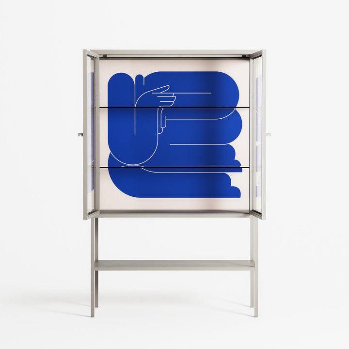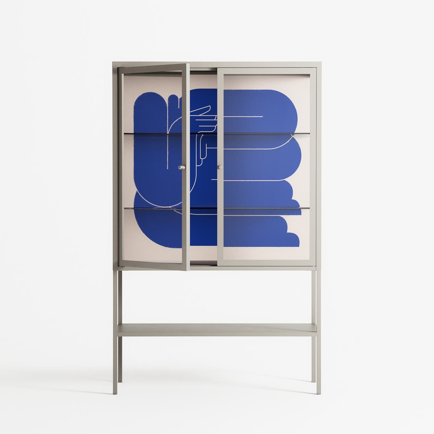 Vitrine pairs artworks by artists, designers, and creatives from around the world with a frame that elevates and displays them in everyday space. The cabinet is built from precision-cut metal with a powder-coated finish — resistant to wear and crafted for stability — making it ideal for both office and home spaces.