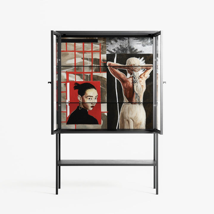 Vitrine pairs artworks by artists, designers, and creatives from around the world with a frame that elevates and displays them in everyday space. The cabinet is built from precision-cut metal with a powder-coated finish — resistant to wear and crafted for stability — making it ideal for both office and home spaces.