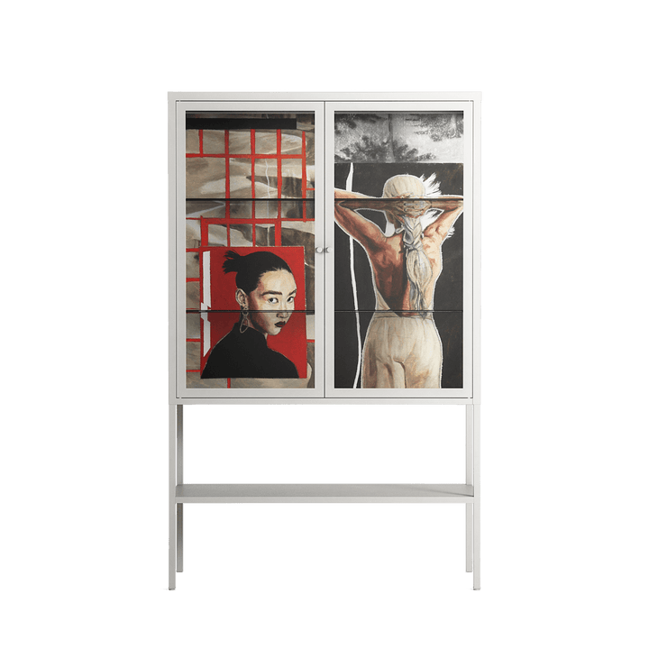 Vitrine pairs artworks by artists, designers, and creatives from around the world with a frame that elevates and displays them in everyday space. The cabinet is built from precision-cut metal with a powder-coated finish — resistant to wear and crafted for stability — making it ideal for both office and home spaces.