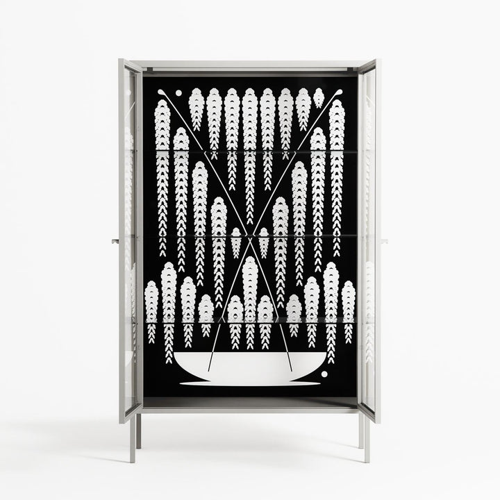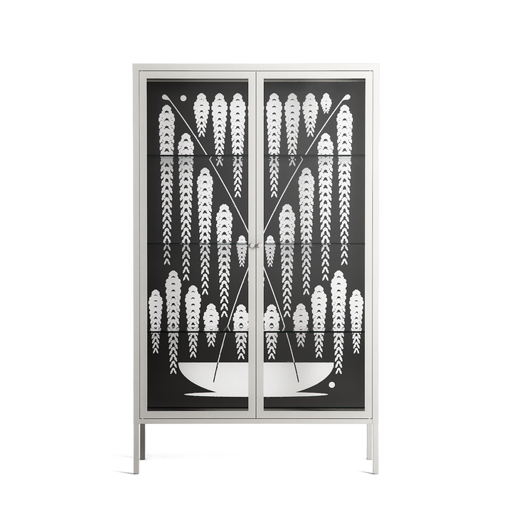Vitrine pairs artworks by artists, designers, and creatives from around the world with a frame that elevates and displays them in everyday space. The cabinet is built from precision-cut metal with a powder-coated finish — resistant to wear and crafted for stability — making it ideal for both office and home spaces.