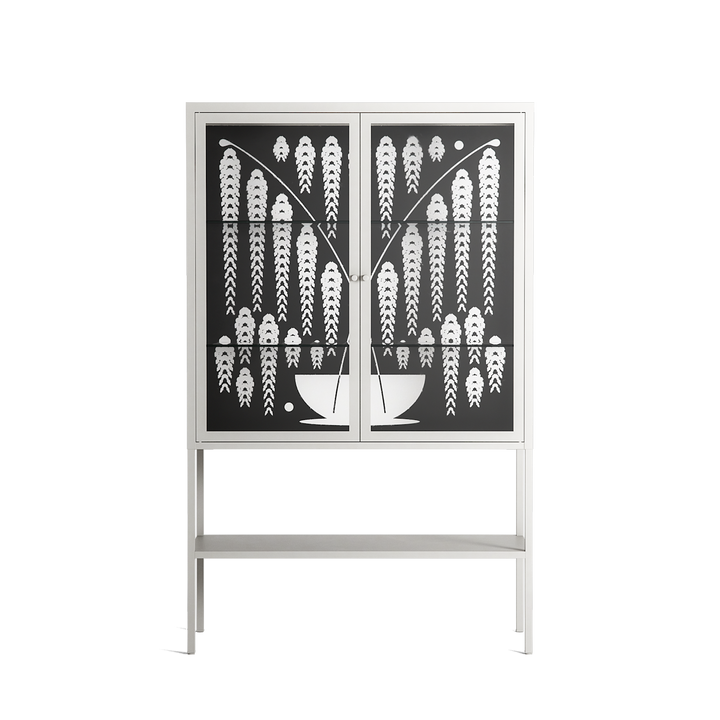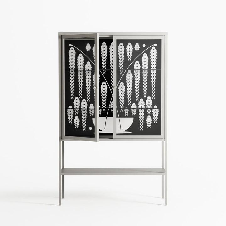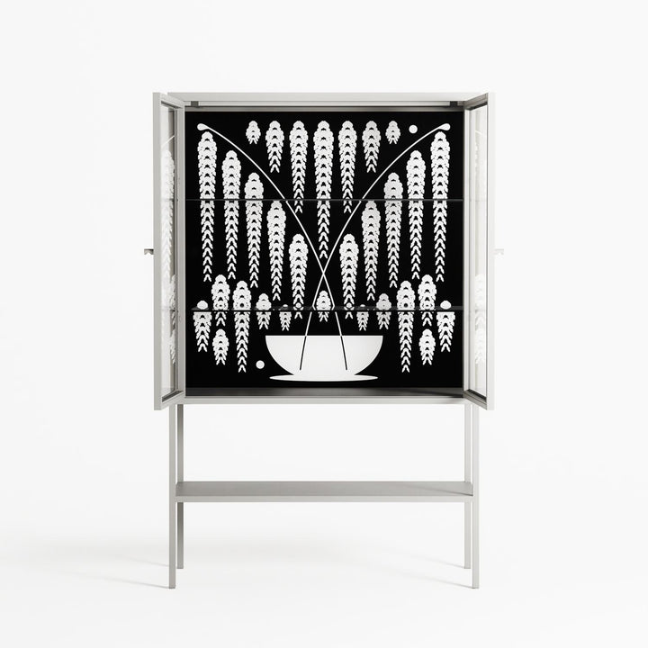 Vitrine pairs artworks by artists, designers, and creatives from around the world with a frame that elevates and displays them in everyday space. The cabinet is built from precision-cut metal with a powder-coated finish — resistant to wear and crafted for stability — making it ideal for both office and home spaces.