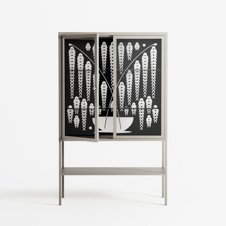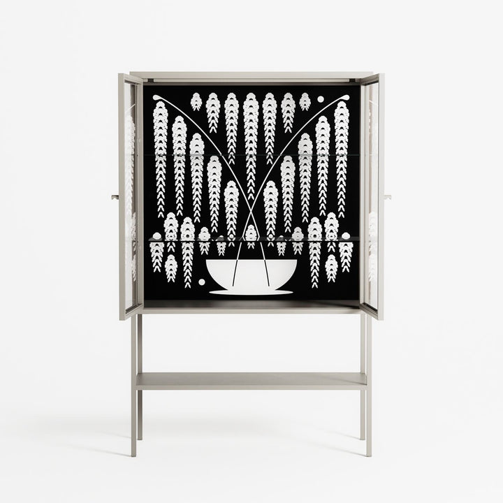 Vitrine pairs artworks by artists, designers, and creatives from around the world with a frame that elevates and displays them in everyday space. The cabinet is built from precision-cut metal with a powder-coated finish — resistant to wear and crafted for stability — making it ideal for both office and home spaces.