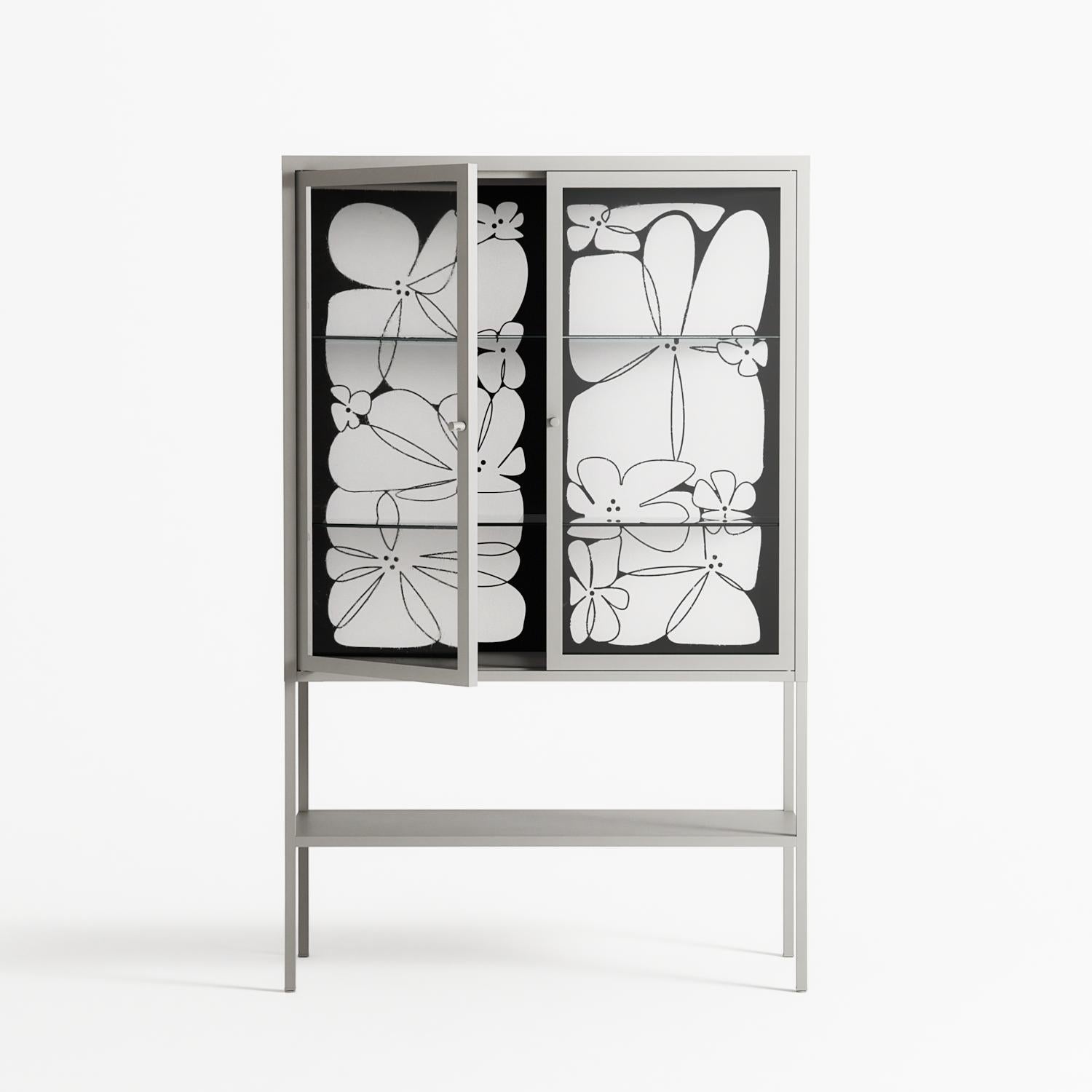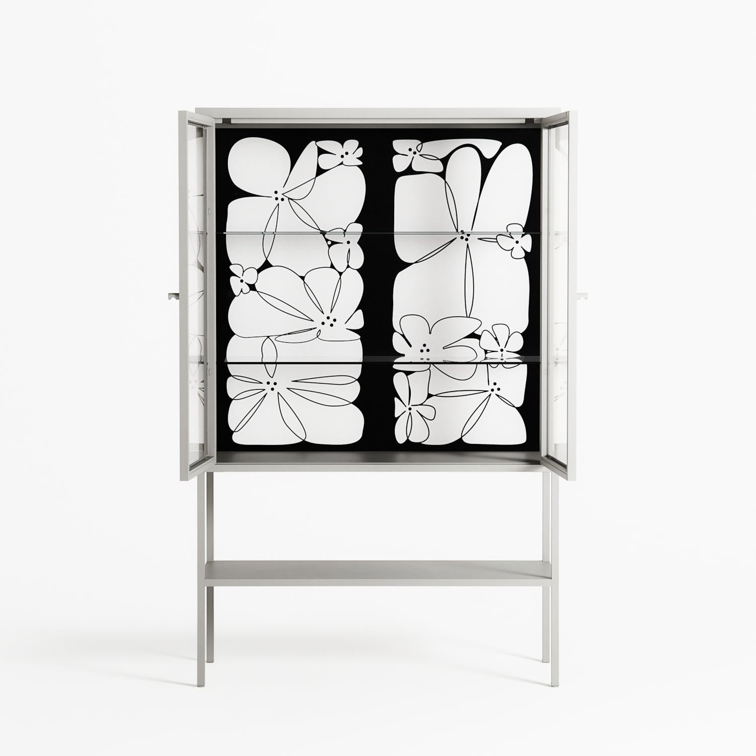 Vitrine pairs artworks by artists, designers, and creatives from around the world with a frame that elevates and displays them in everyday space. The cabinet is built from precision-cut metal with a powder-coated finish — resistant to wear and crafted for stability — making it ideal for both office and home spaces.