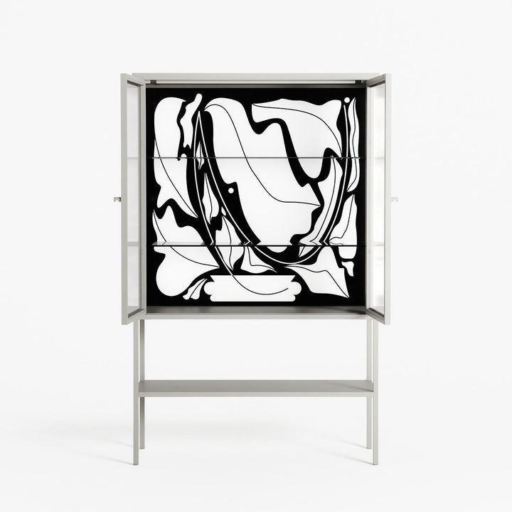 Vitrine pairs artworks by artists, designers, and creatives from around the world with a frame that elevates and displays them in everyday space. The cabinet is built from precision-cut metal with a powder-coated finish — resistant to wear and crafted for stability — making it ideal for both office and home spaces.
