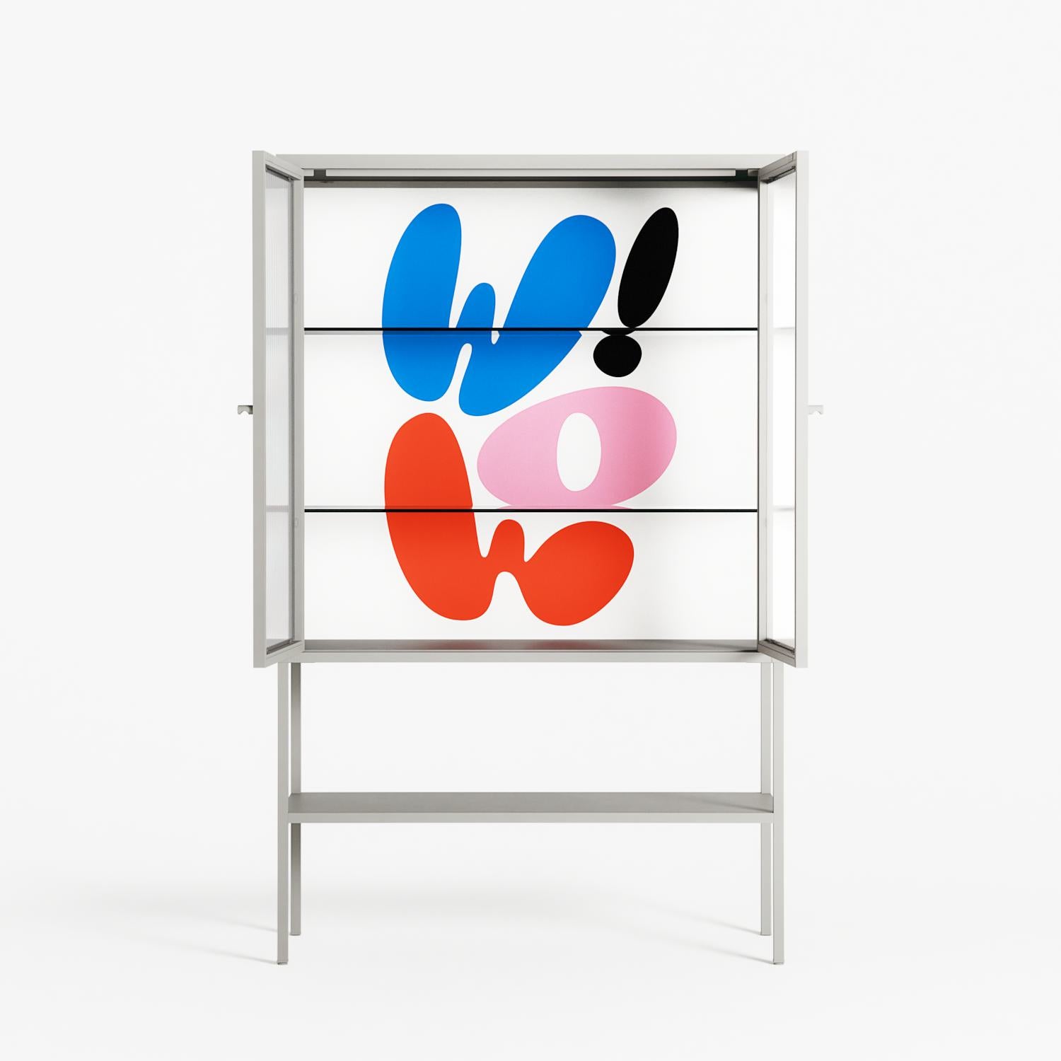 Vitrine pairs artworks by artists, designers, and creatives from around the world with a frame that elevates and displays them in everyday space. The cabinet is built from precision-cut metal with a powder-coated finish — resistant to wear and crafted for stability — making it ideal for both office and home spaces.
