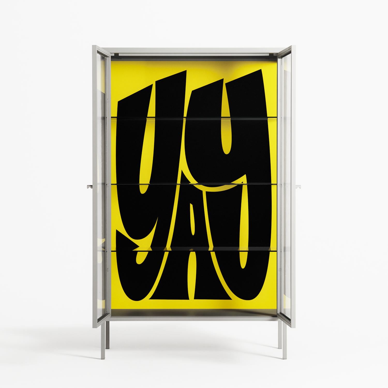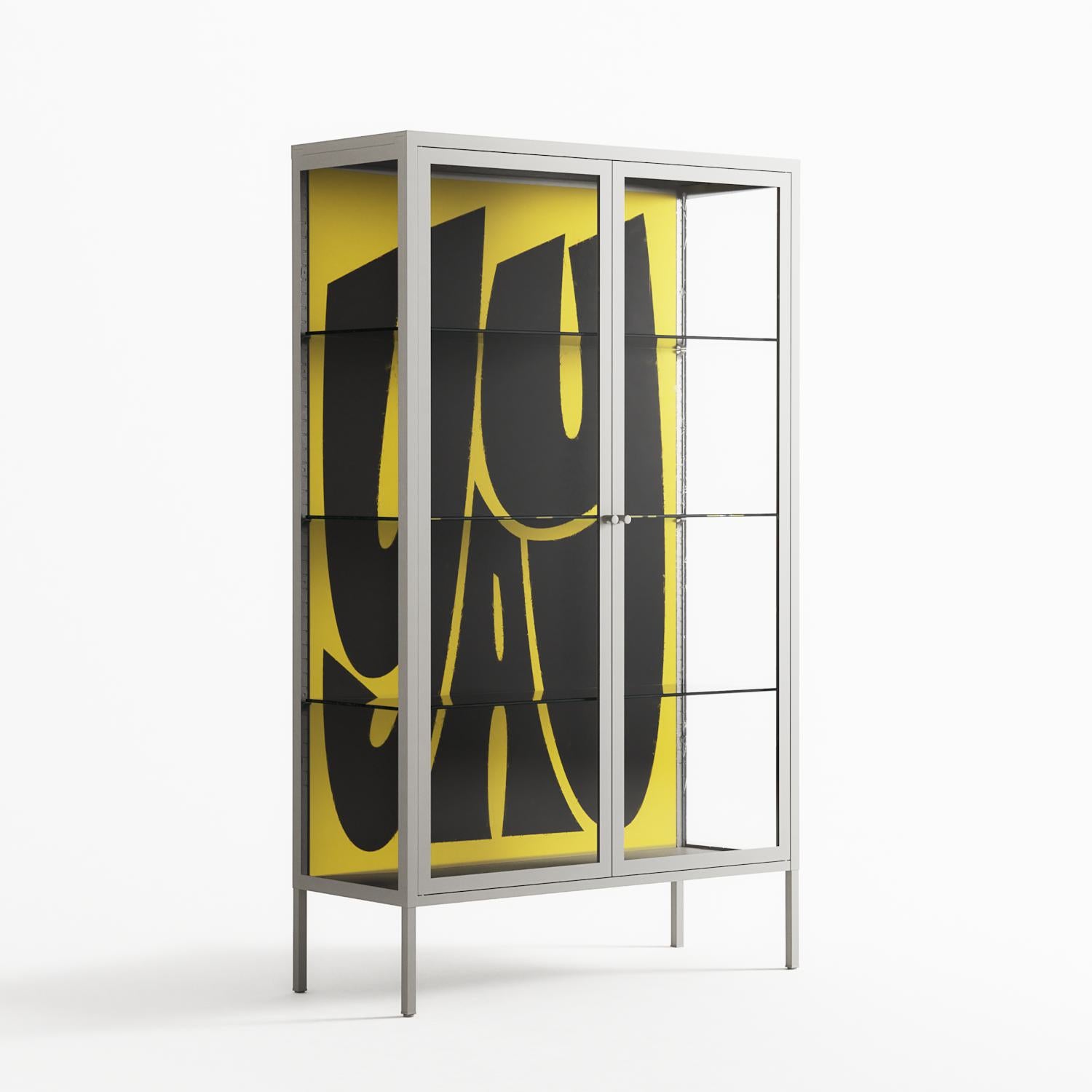Vitrine pairs artworks by artists, designers, and creatives from around the world with a frame that elevates and displays them in everyday space. The cabinet is built from precision-cut metal with a powder-coated finish — resistant to wear and crafted for stability — making it ideal for both office and home spaces.