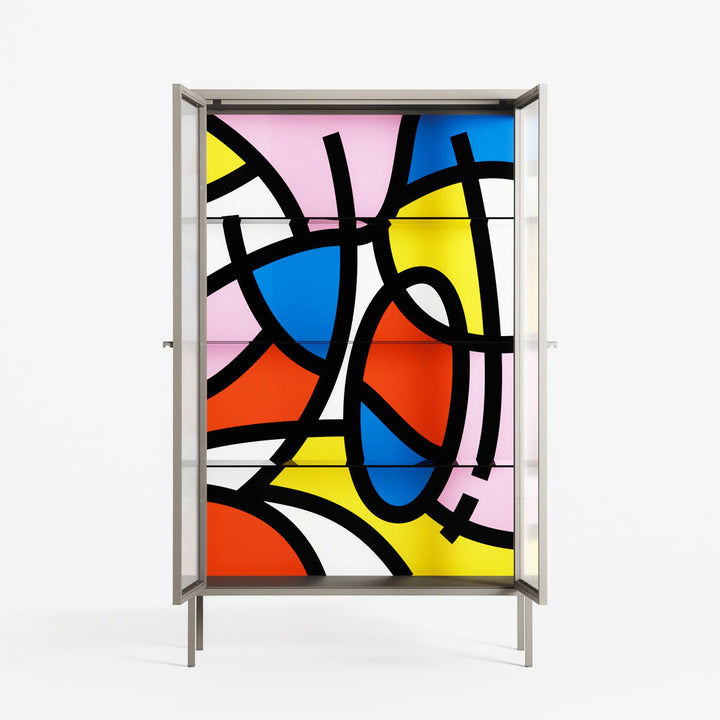 Vitrine pairs artworks by artists, designers, and creatives from around the world with a frame that elevates and displays them in everyday space. The cabinet is built from precision-cut metal with a powder-coated finish — resistant to wear and crafted for stability — making it ideal for both office and home spaces.
