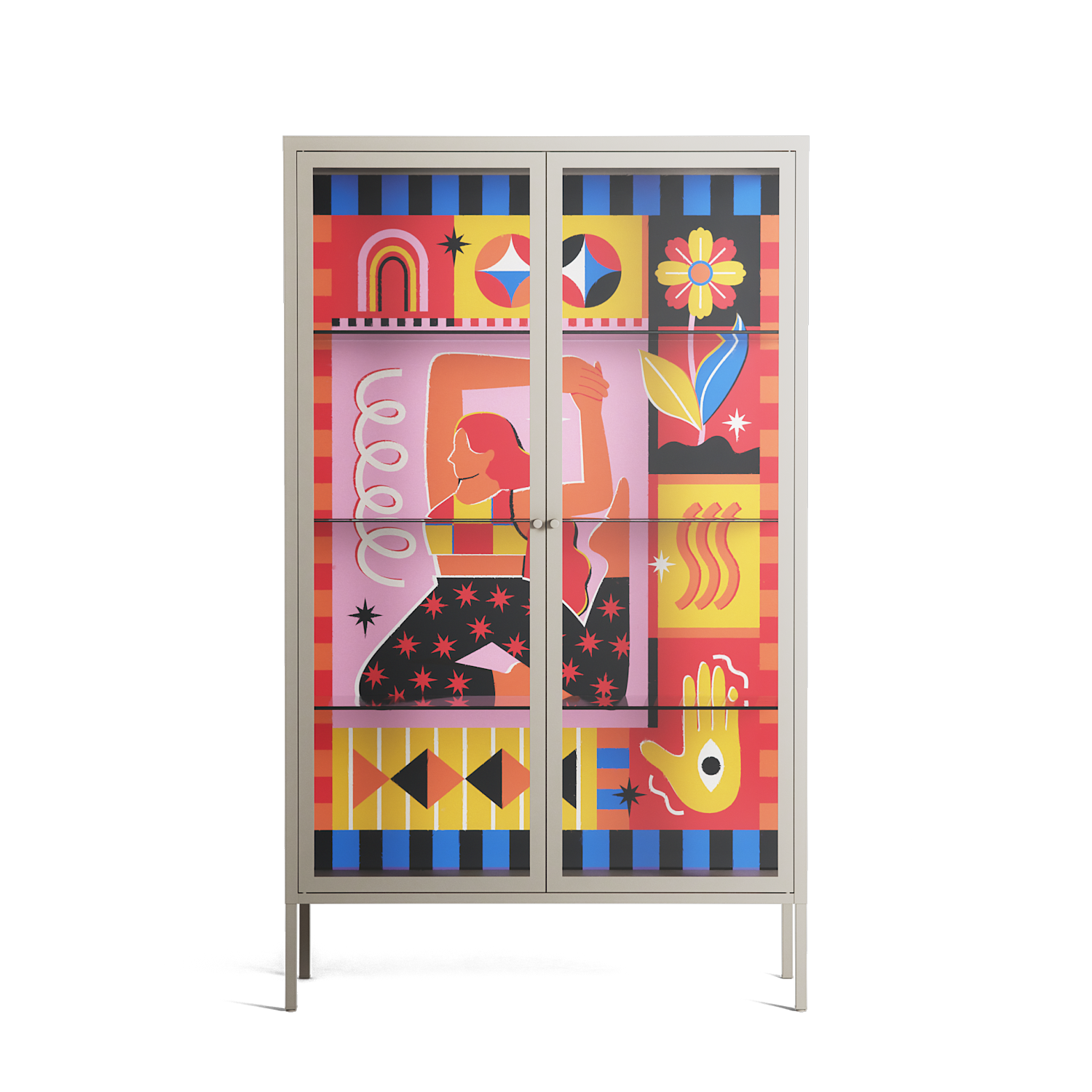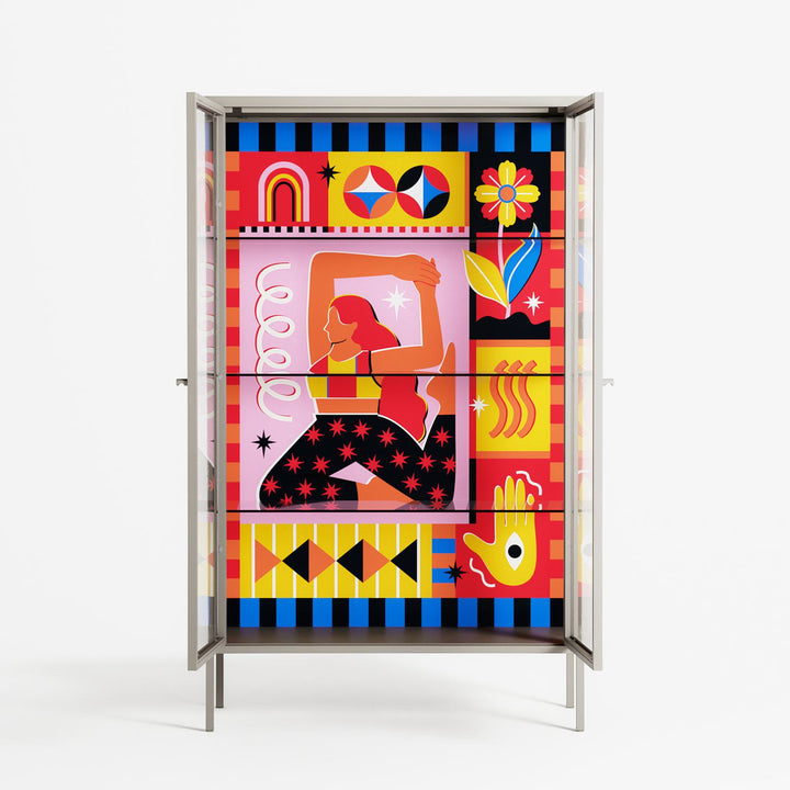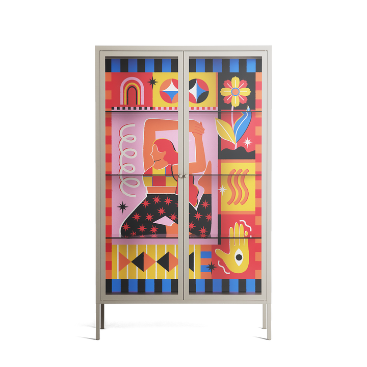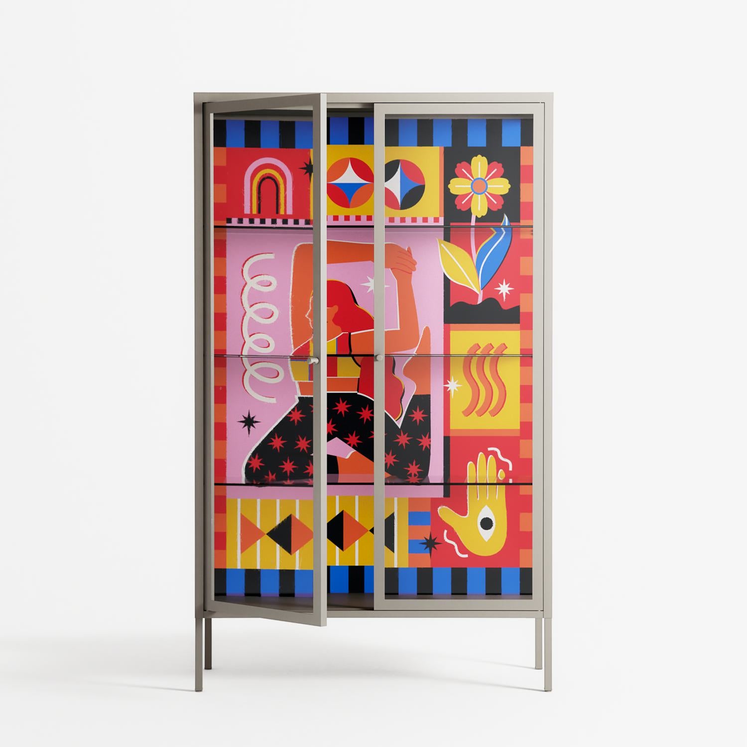 Vitrine pairs artworks by artists, designers, and creatives from around the world with a frame that elevates and displays them in everyday space. The cabinet is built from precision-cut metal with a powder-coated finish — resistant to wear and crafted for stability — making it ideal for both office and home spaces.