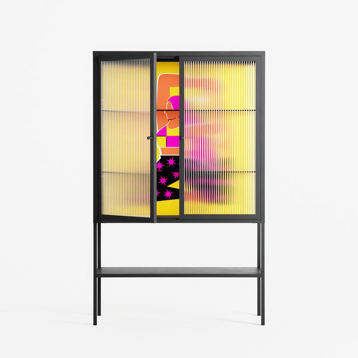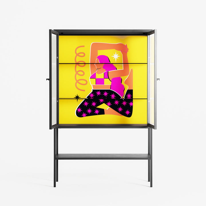 Vitrine pairs artworks by artists, designers, and creatives from around the world with a frame that elevates and displays them in everyday space. The cabinet is built from precision-cut metal with a powder-coated finish — resistant to wear and crafted for stability — making it ideal for both office and home spaces.