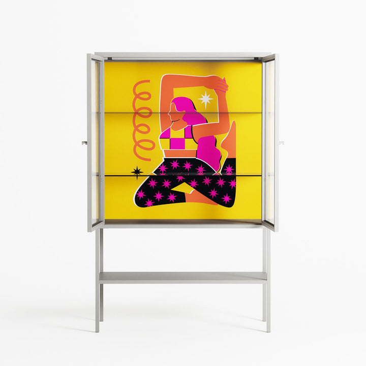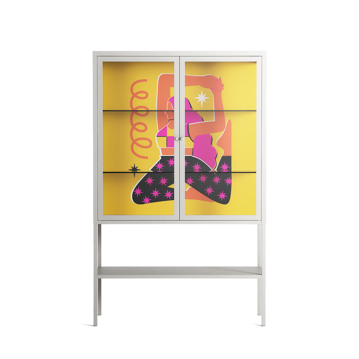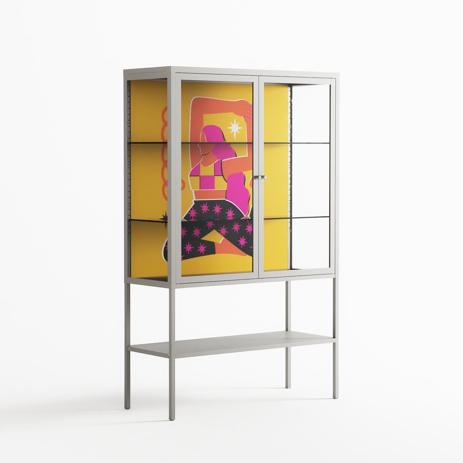 Vitrine pairs artworks by artists, designers, and creatives from around the world with a frame that elevates and displays them in everyday space. The cabinet is built from precision-cut metal with a powder-coated finish — resistant to wear and crafted for stability — making it ideal for both office and home spaces.